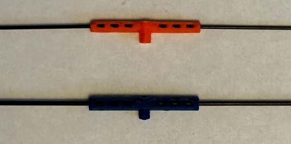 Orange hubs are for 0.5 - 0.8mm carbon rods and 0.020" prop shafts.